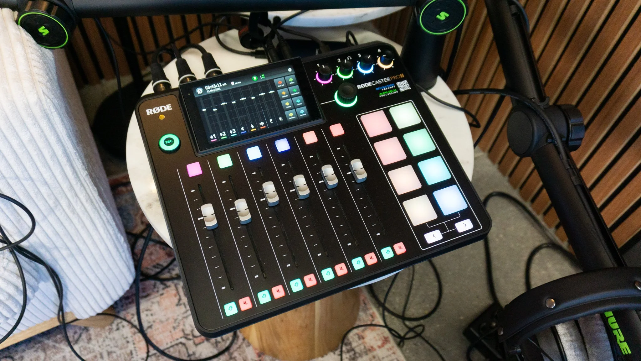 This mid-century styled podcast room combines warm aesthetics with cutting-edge audio technology. It’s equipped with everything needed for a professional podcasting experience: